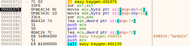 그리고 0040109A 주소에서 easy keygen.401150이 호출되어 실행된다.